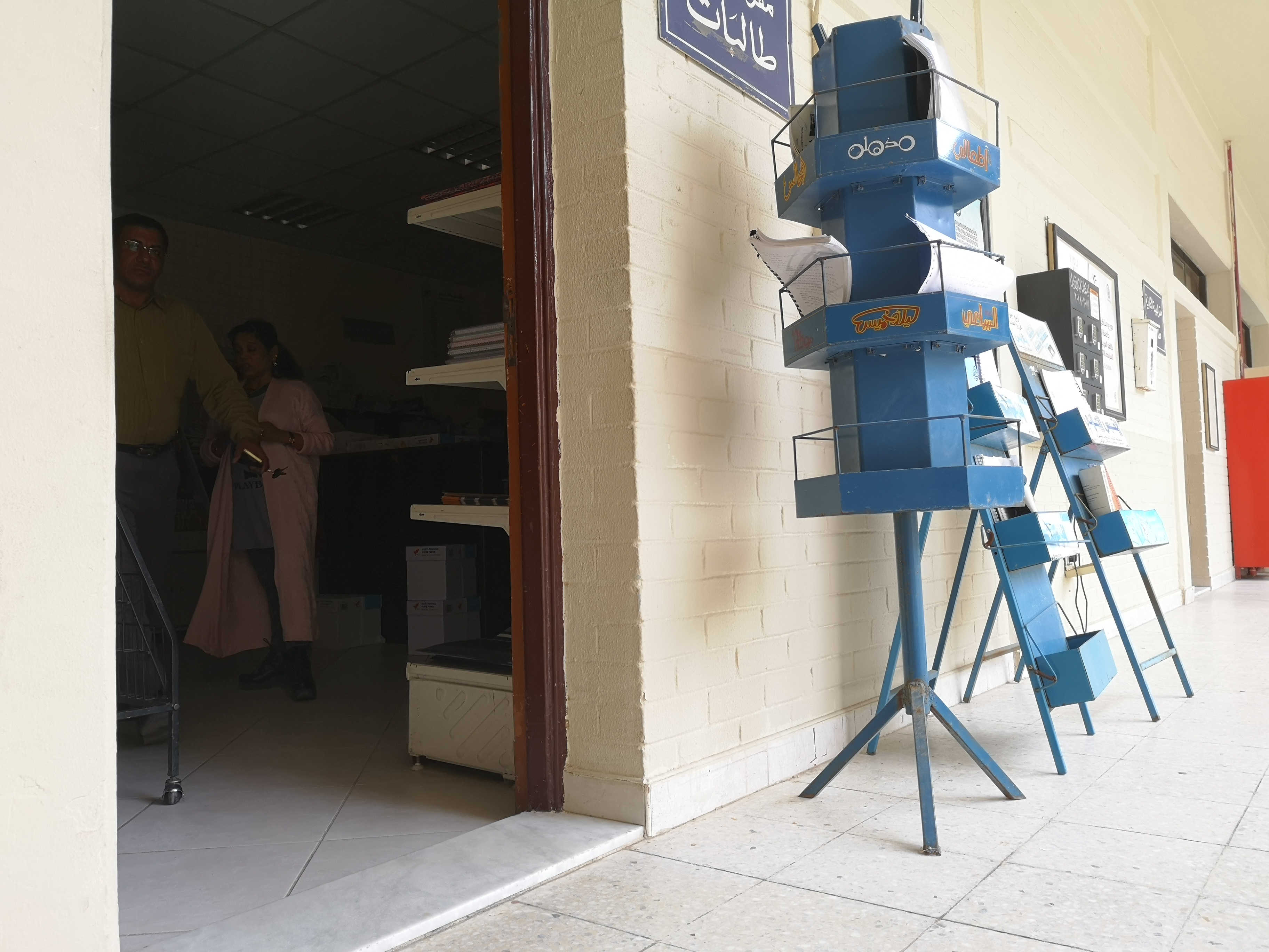 كنا نتبادل المذكرات عبر تصويرها ونسخها في هذه الغرفة، أسعار النسخ مدعومة من الكلية فننسخ بالتالي عشرات الصفحات والملازم بأسعار معقولة للغاية. طبعا التصوير للبنات لأن الكلية بأسرها هي “للبنات” ولأنها مقر مؤقت لبعض أقسام كلية الآداب ريثما تجهز الجامعة الجديدة وحرمها في منطقة الشدادية، ولا نعلم متى سيحدث ذلك أخيرا؟!