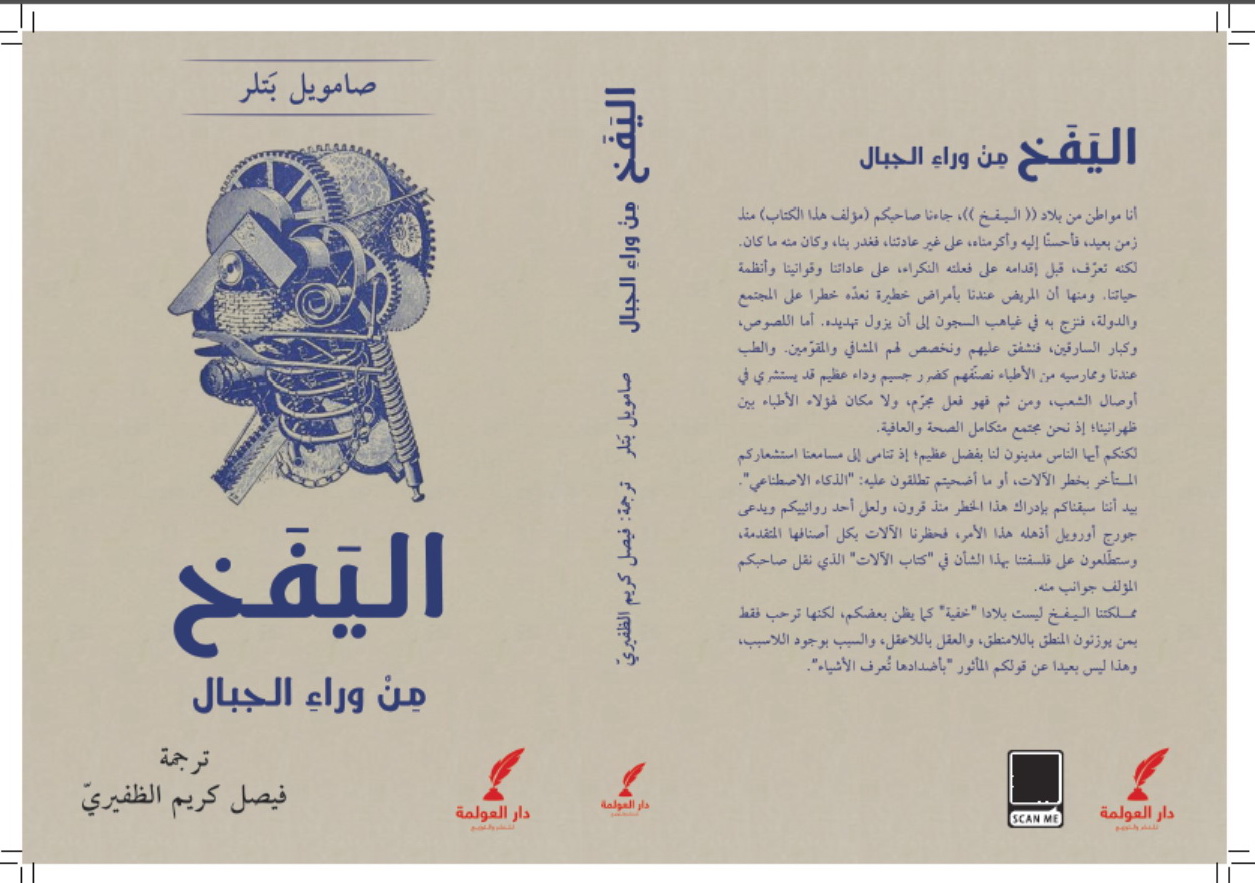 وخطر لي أن هذه “الثيمة”، أو فكرة “حظر الآلات” هي المحور الأساسي لرواية الأديب الإنكليزي صامويل بتلر Erewhon (الصادرة في عام 1872) بعنوانها العربي الذي ابتكرناه “اليــفــخ”، والتي تنشرها دار العولمة في دولة الكويت بترجمتنا قريبا بمشيئة الله. وقد ذيّلها المترجم بعدة ملاحق، منها البحث والتعليق الذي أجراه حول أدب الخيال العلمي والمدينة الفاضلة ونقيضها، في الفن الروائي العالمي، وتبيّن منه الفقر الشديد في هذا الجانب عند الروائيين العرب المتأخرين.